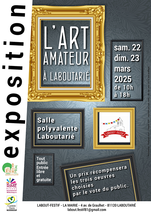 Pour la 4ème année consécutive, Laboutarié accueille l’exposition ʺl’Art Amateurʺ les samedi 22 et dimanche 23 mars 2025 de 10h à 18h à la salle communale.